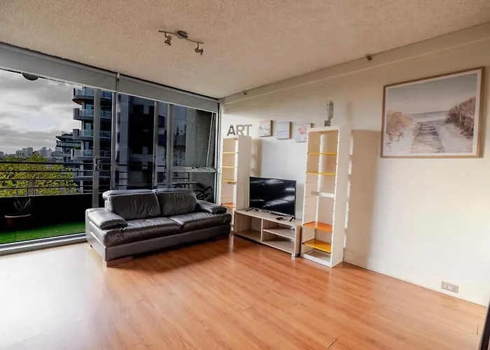 広々とした寝室1室のSunny Retreat & Balcony Near Albert Park メルボルンアパートはパレス劇場から徒歩で25分に位置し、都市の景色を一望できます。 この70m²のアパートには庭園の景色を望むテラスがあります。